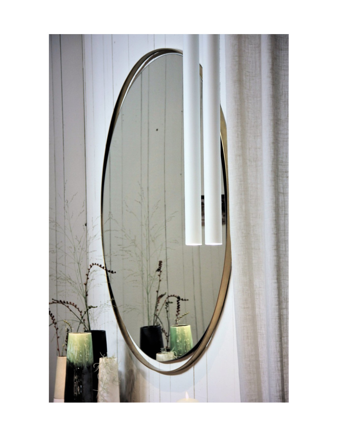 Funkční umělecké dílo, které efektivně znásobí přirozené světlo a opticky zvětší prostor, čímž dodá místnosti vzdušnost. Zrcadlo s minimalistickým, nadčasovým designem je ohraničeno tenkým, elegantním kovovým rámem ve zlatém odstínu. Čistá kruhová forma podtrhuje moderní a sofistikovaný vzhled.