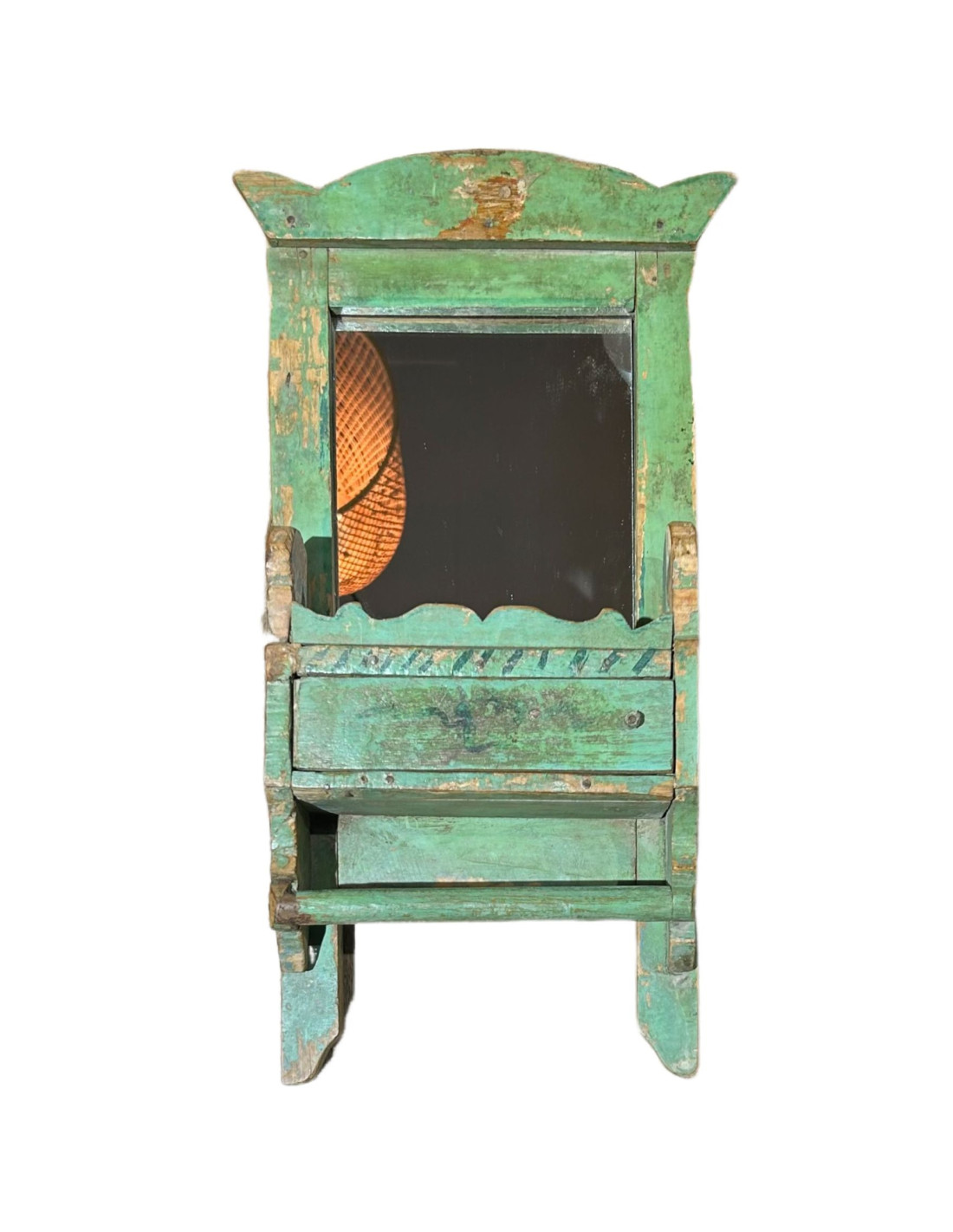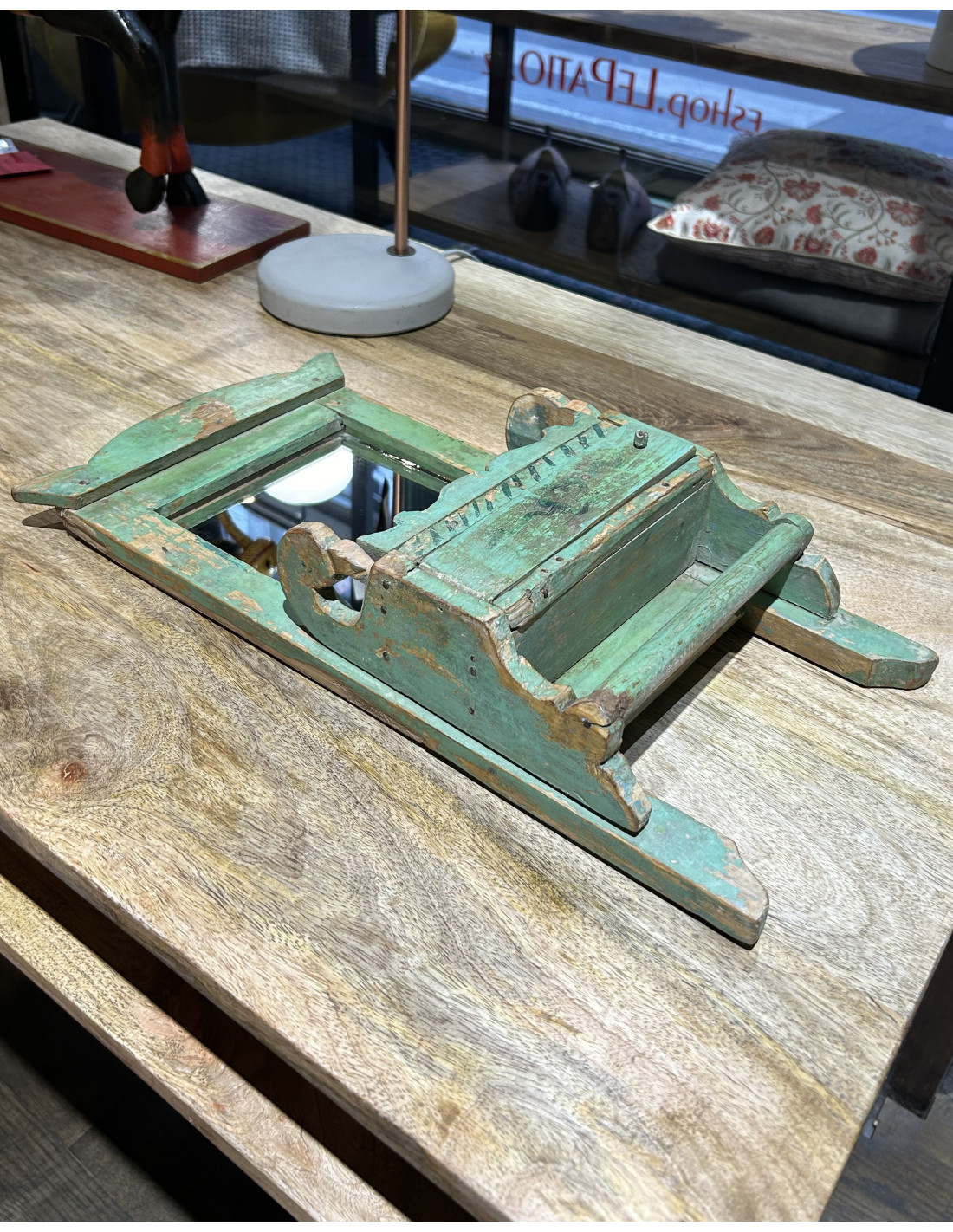 Dekorační zrcadlo s poličkou z teakového dřeva se zelenou patinou | dovoz Indie