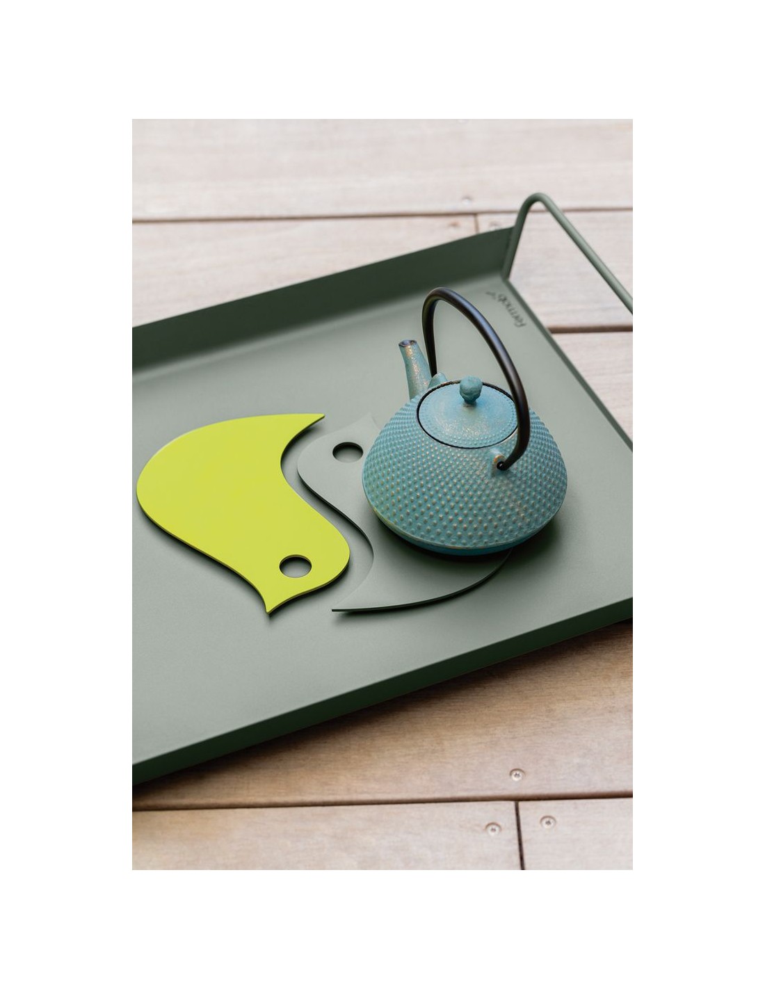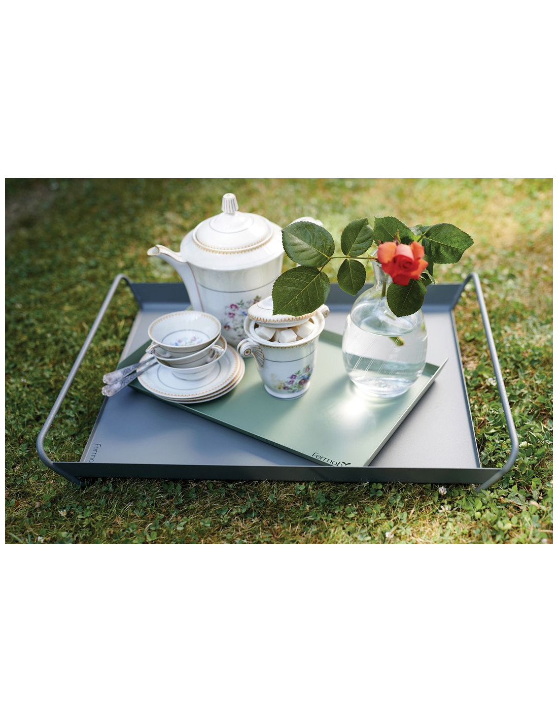 The Alto metal tray stands out with its soft and rounded lines and refined design, just like other Fermob products, yet remains extremely practical. A tray on which to carry everything you need for indoor and outdoor dining, and you can leave it on the table without ceasing to be stylish. You don't have to hide this tray anywhere! The tray has plastic pads to prevent scratching the surfaces it stands on.