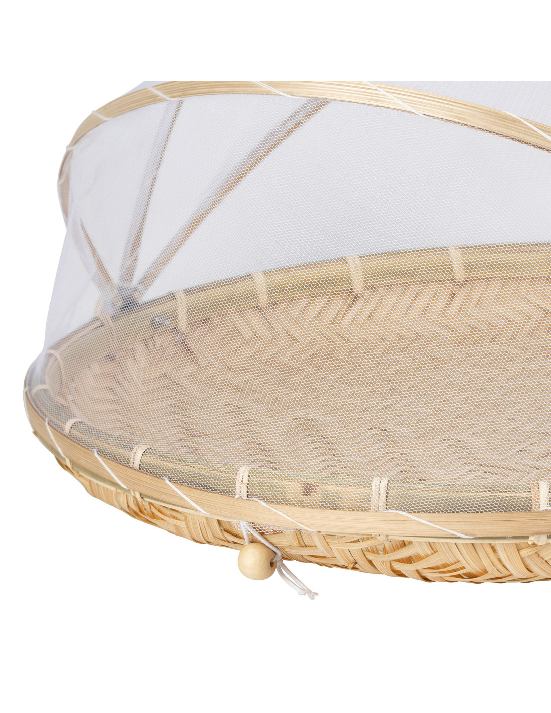 The tray made of natural bamboo with a fine braided pattern is light and durable, the lid made of fine white netting reliably protects the food from insects and dirt. The mesh is easily hinged and complete with tiny wooden handles for convenient opening. With a diameter of 45 cm, the tray can hold a tray of fruit, pastries, cakes or cheese and thanks to the combination of bamboo and light netting, it looks light, airy and stylish - suitable for boho and Scandinavian interiors.