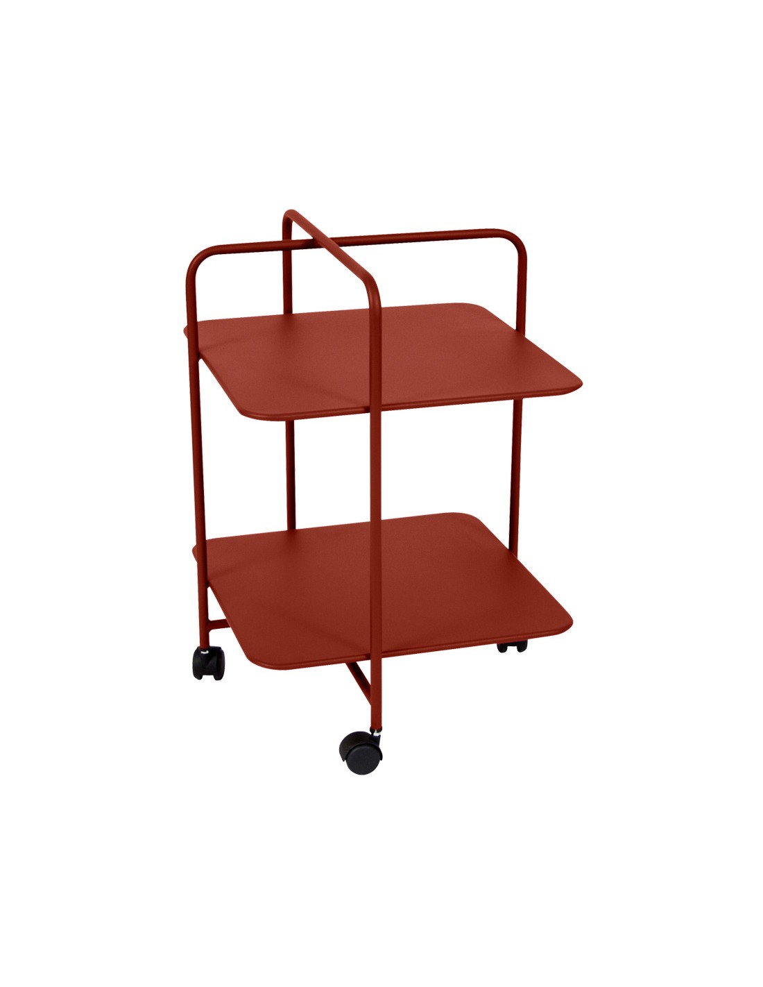 The Alfred table boasts an attractive, asymmetrical design – not surprising when you consider that it is the work of Pascal Mourgue, a designer whose relationship with Fermob goes back a long way and which won the Grand Prix de la Création. This easily portable furniture fits into every corner of the house or garden. Just imagine how good it will look! With a clean look inspired by the 1950s, the table is easy to move thanks to the handle and integrated wheels. It's a versatile piece of small furniture that you can use to store (and transport) plates, magazines, or plants, and that can function as a side bar in the office or on the patio, or even as a minibar. This metal table is suitable for both indoor and outdoor use, as it is specially treated to withstand adverse weather conditions.