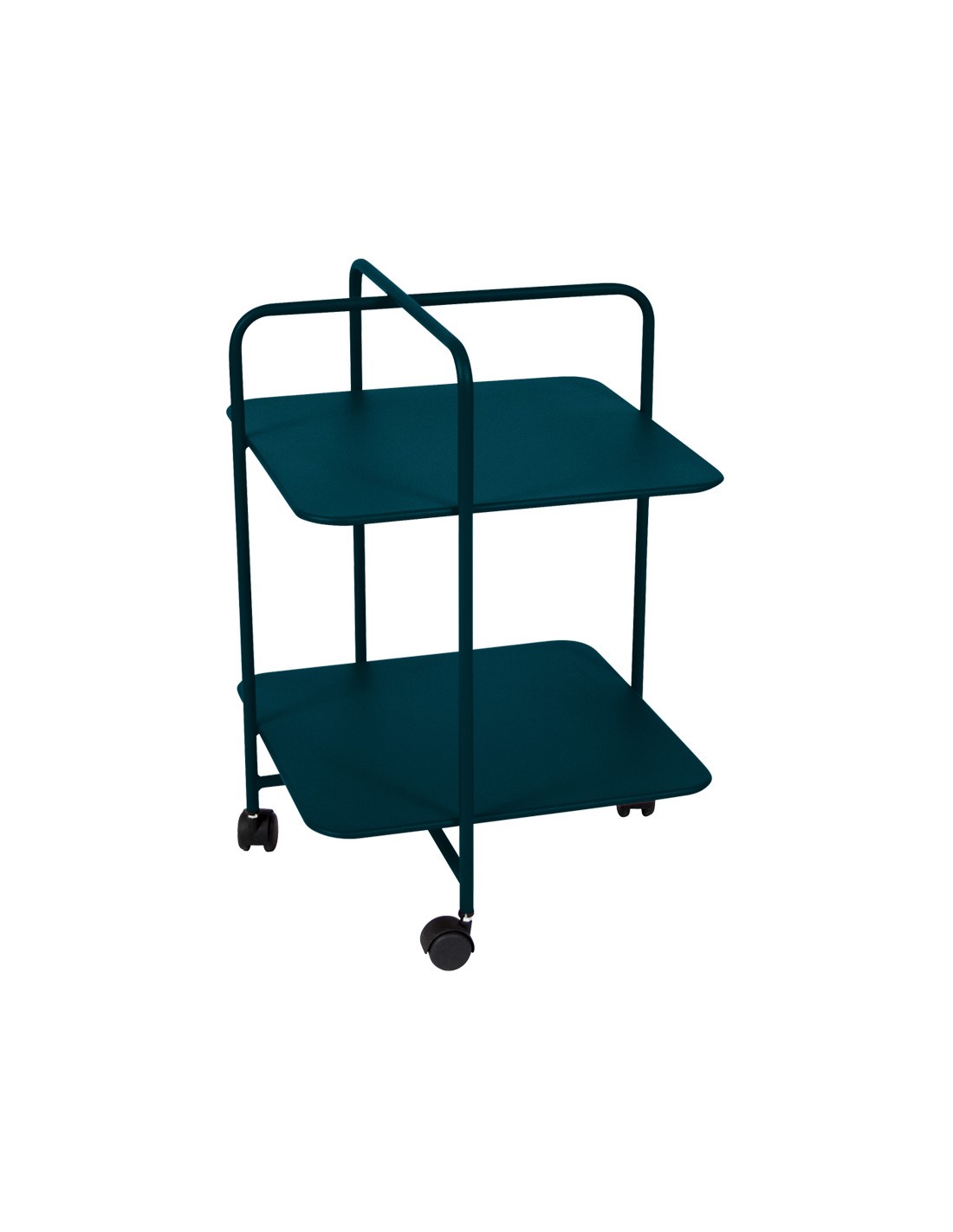 The Alfred table boasts an attractive, asymmetrical design – not surprising when you consider that it is the work of Pascal Mourgue, a designer whose relationship with Fermob goes back a long way and which won the Grand Prix de la Création. This easily portable furniture fits into every corner of the house or garden. Just imagine how good it will look! With a clean look inspired by the 1950s, the table is easy to move thanks to the handle and integrated wheels. It's a versatile piece of small furniture that you can use to store (and transport) plates, magazines, or plants, and that can function as a side bar in the office or on the patio, or even as a minibar. This metal table is suitable for both indoor and outdoor use, as it is specially treated to withstand adverse weather conditions.