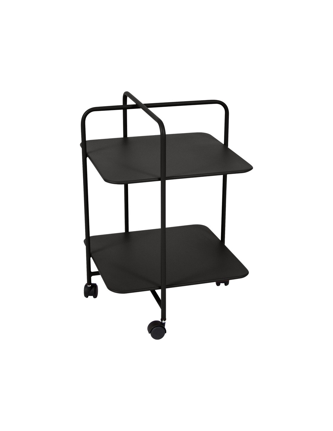 The Alfred table boasts an attractive, asymmetrical design – not surprising when you consider that it is the work of Pascal Mourgue, a designer whose relationship with Fermob goes back a long way and which won the Grand Prix de la Création. This easily portable furniture fits into every corner of the house or garden. Just imagine how good it will look! With a clean look inspired by the 1950s, the table is easy to move thanks to the handle and integrated wheels. It's a versatile piece of small furniture that you can use to store (and transport) plates, magazines, or plants, and that can function as a side bar in the office or on the patio, or even as a minibar. This metal table is suitable for both indoor and outdoor use, as it is specially treated to withstand adverse weather conditions.