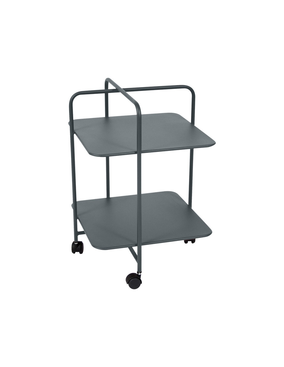 The Alfred table boasts an attractive, asymmetrical design – not surprising when you consider that it is the work of Pascal Mourgue, a designer whose relationship with Fermob goes back a long way and which won the Grand Prix de la Création. This easily portable furniture fits into every corner of the house or garden. Just imagine how good it will look! With a clean look inspired by the 1950s, the table is easy to move thanks to the handle and integrated wheels. It's a versatile piece of small furniture that you can use to store (and transport) plates, magazines, or plants, and that can function as a side bar in the office or on the patio, or even as a minibar. This metal table is suitable for both indoor and outdoor use, as it is specially treated to withstand adverse weather conditions.