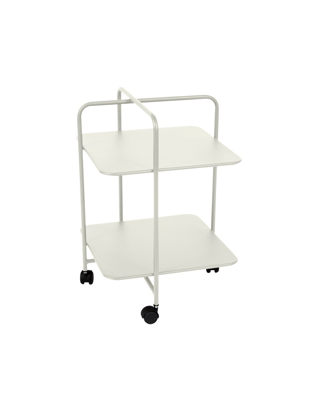 The Alfred table boasts an attractive, asymmetrical design – not surprising when you consider that it is the work of Pascal Mourgue, a designer whose relationship with Fermob goes back a long way and which won the Grand Prix de la Création. This easily portable furniture fits into every corner of the house or garden. Just imagine how good it will look! With a clean look inspired by the 1950s, the table is easy to move thanks to the handle and integrated wheels. It's a versatile piece of small furniture that you can use to store (and transport) plates, magazines, or plants, and that can function as a side bar in the office or on the patio, or even as a minibar. This metal table is suitable for both indoor and outdoor use, as it is specially treated to withstand adverse weather conditions.