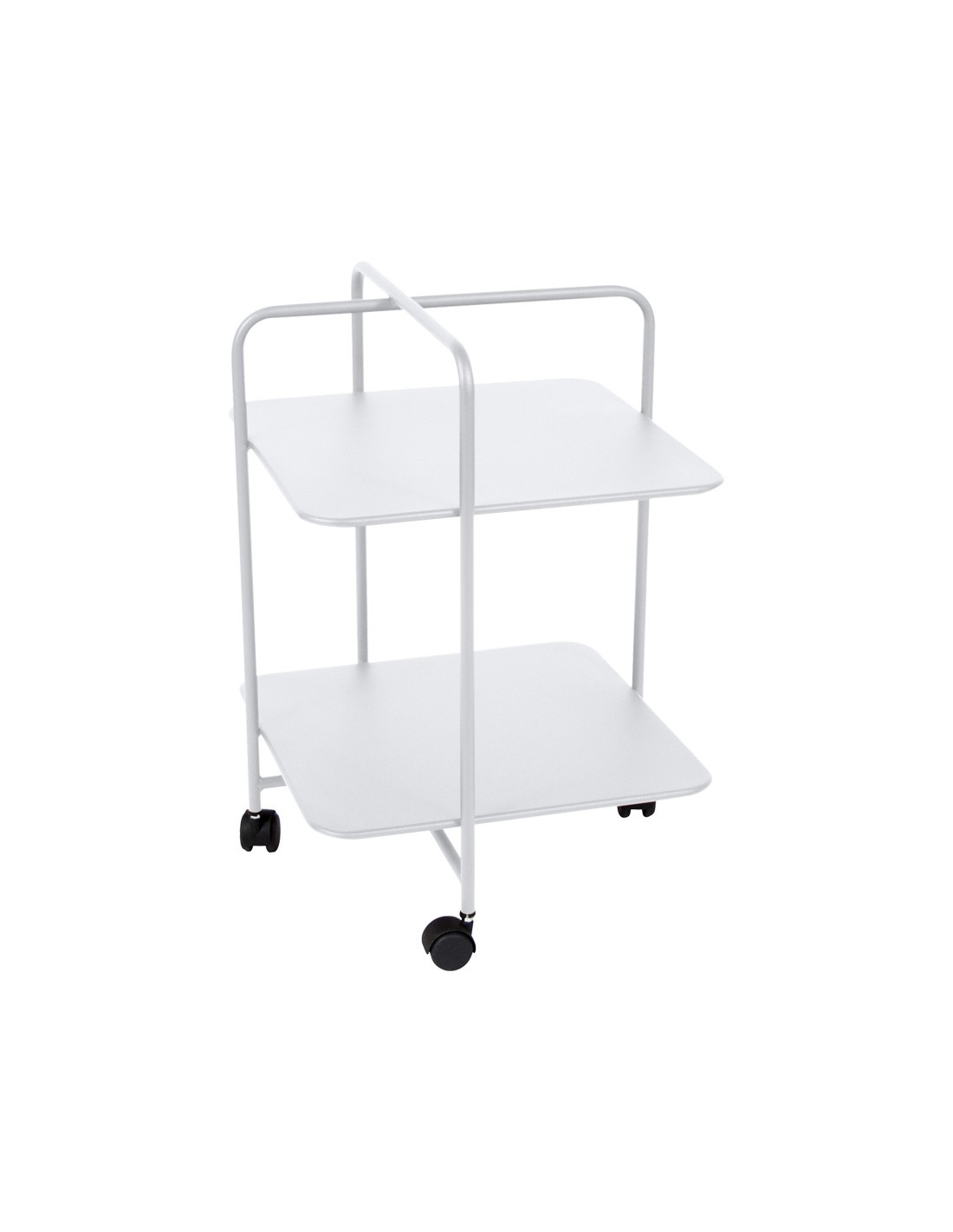 The Alfred table boasts an attractive, asymmetrical design – not surprising when you consider that it is the work of Pascal Mourgue, a designer whose relationship with Fermob goes back a long way and which won the Grand Prix de la Création. This easily portable furniture fits into every corner of the house or garden. Just imagine how good it will look! With a clean look inspired by the 1950s, the table is easy to move thanks to the handle and integrated wheels. It's a versatile piece of small furniture that you can use to store (and transport) plates, magazines, or plants, and that can function as a side bar in the office or on the patio, or even as a minibar. This metal table is suitable for both indoor and outdoor use, as it is specially treated to withstand adverse weather conditions.