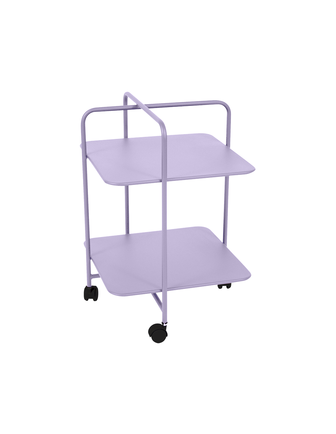 The Alfred table boasts an attractive, asymmetrical design – not surprising when you consider that it is the work of Pascal Mourgue, a designer whose relationship with Fermob goes back a long way and which won the Grand Prix de la Création. This easily portable furniture fits into every corner of the house or garden. Just imagine how good it will look! With a clean look inspired by the 1950s, the table is easy to move thanks to the handle and integrated wheels. It's a versatile piece of small furniture that you can use to store (and transport) plates, magazines, or plants, and that can function as a side bar in the office or on the patio, or even as a minibar. This metal table is suitable for both indoor and outdoor use, as it is specially treated to withstand adverse weather conditions.