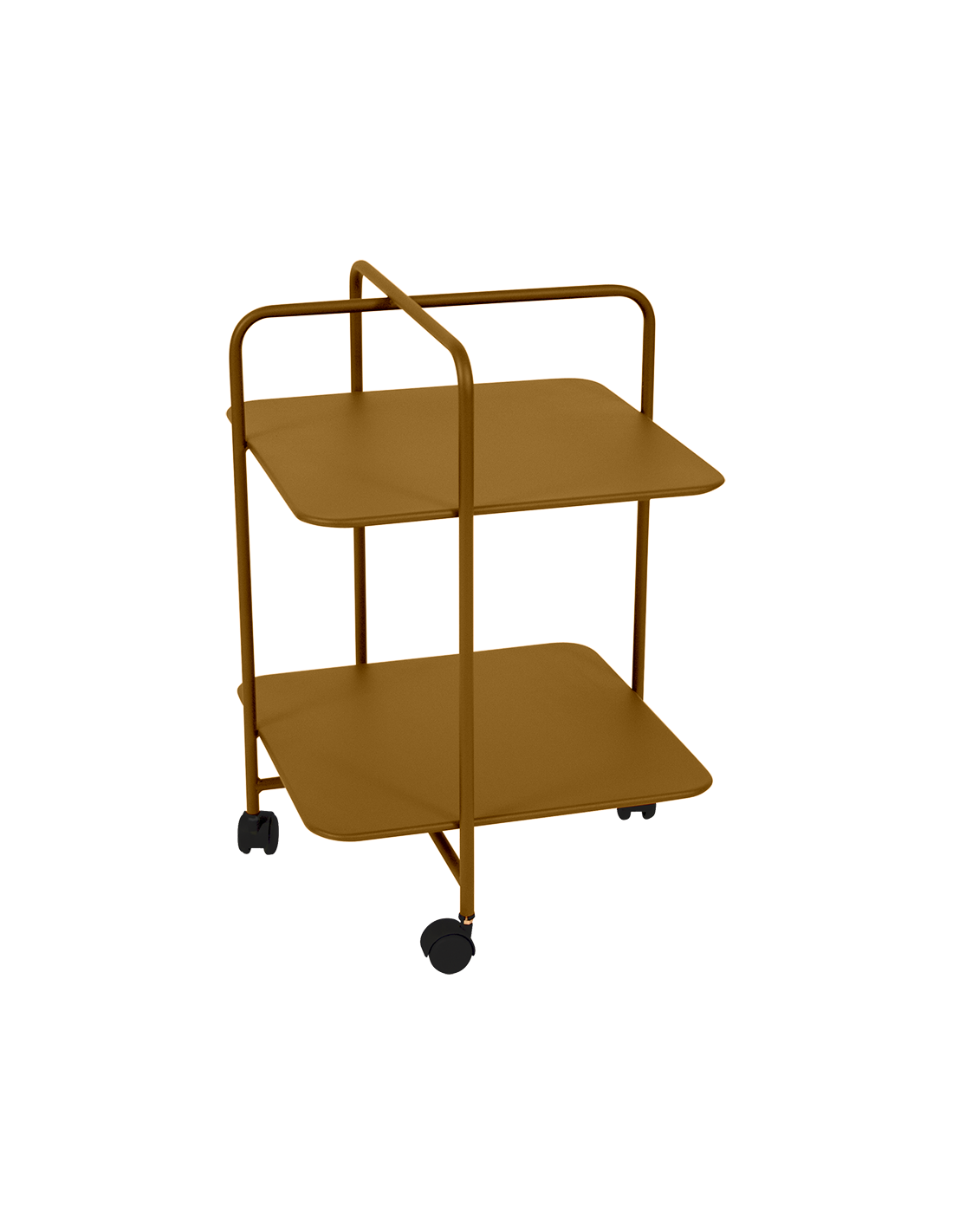 The Alfred table boasts an attractive, asymmetrical design – not surprising when you consider that it is the work of Pascal Mourgue, a designer whose relationship with Fermob goes back a long way and which won the Grand Prix de la Création. This easily portable furniture fits into every corner of the house or garden. Just imagine how good it will look! With a clean look inspired by the 1950s, the table is easy to move thanks to the handle and integrated wheels. It's a versatile piece of small furniture that you can use to store (and transport) plates, magazines, or plants, and that can function as a side bar in the office or on the patio, or even as a minibar. This metal table is suitable for both indoor and outdoor use, as it is specially treated to withstand adverse weather conditions.