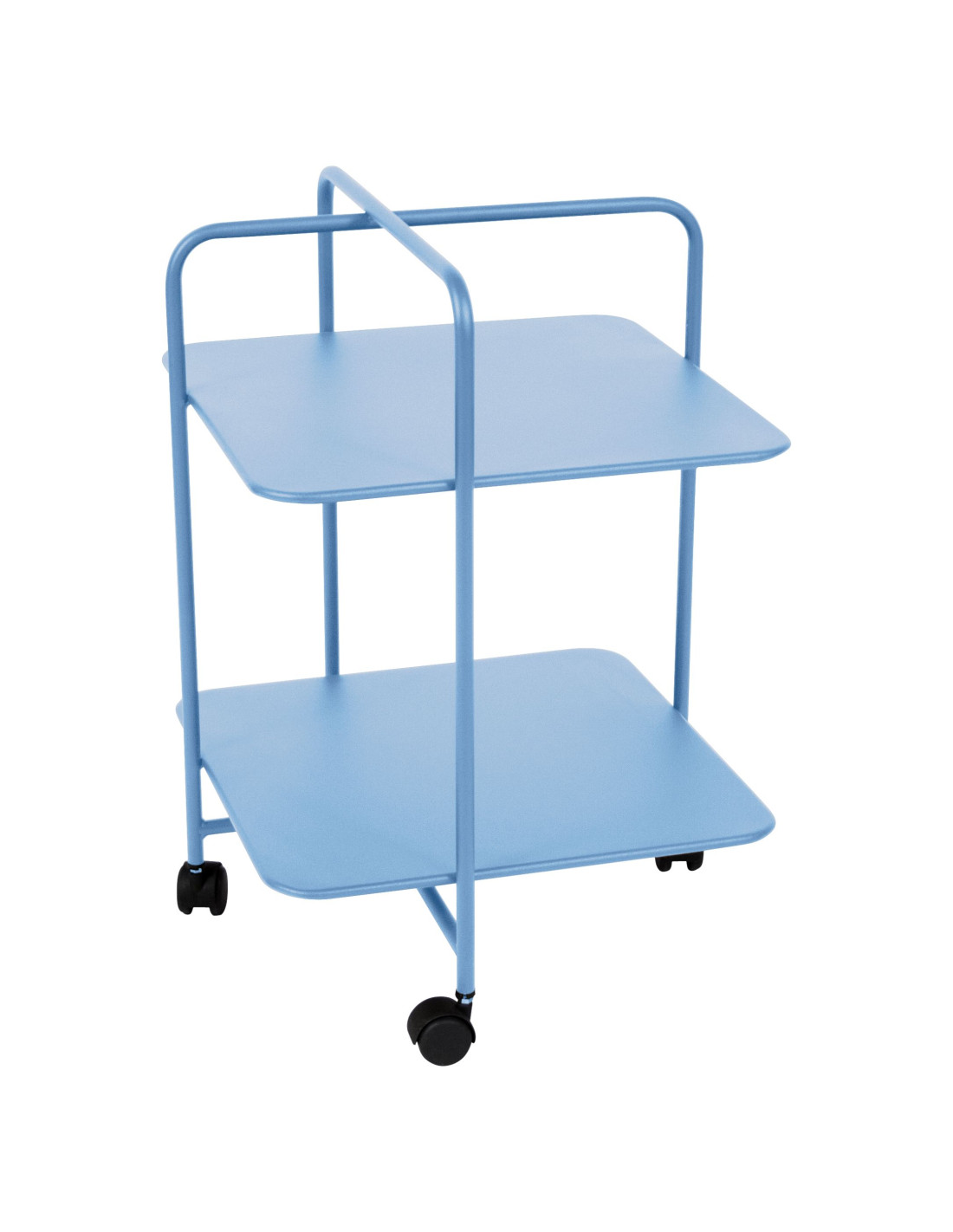 The Alfred table boasts an attractive, asymmetrical design – not surprising when you consider that it is the work of Pascal Mourgue, a designer whose relationship with Fermob goes back a long way and which won the Grand Prix de la Création. This easily portable furniture fits into every corner of the house or garden. Just imagine how good it will look! With a clean look inspired by the 1950s, the table is easy to move thanks to the handle and integrated wheels. It's a versatile piece of small furniture that you can use to store (and transport) plates, magazines, or plants, and that can function as a side bar in the office or on the patio, or even as a minibar. This metal table is suitable for both indoor and outdoor use, as it is specially treated to withstand adverse weather conditions.