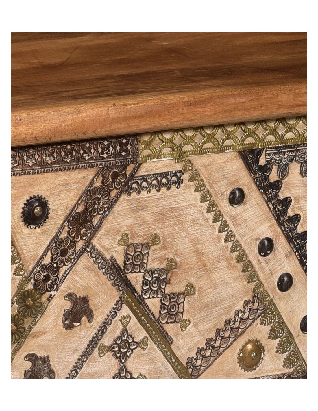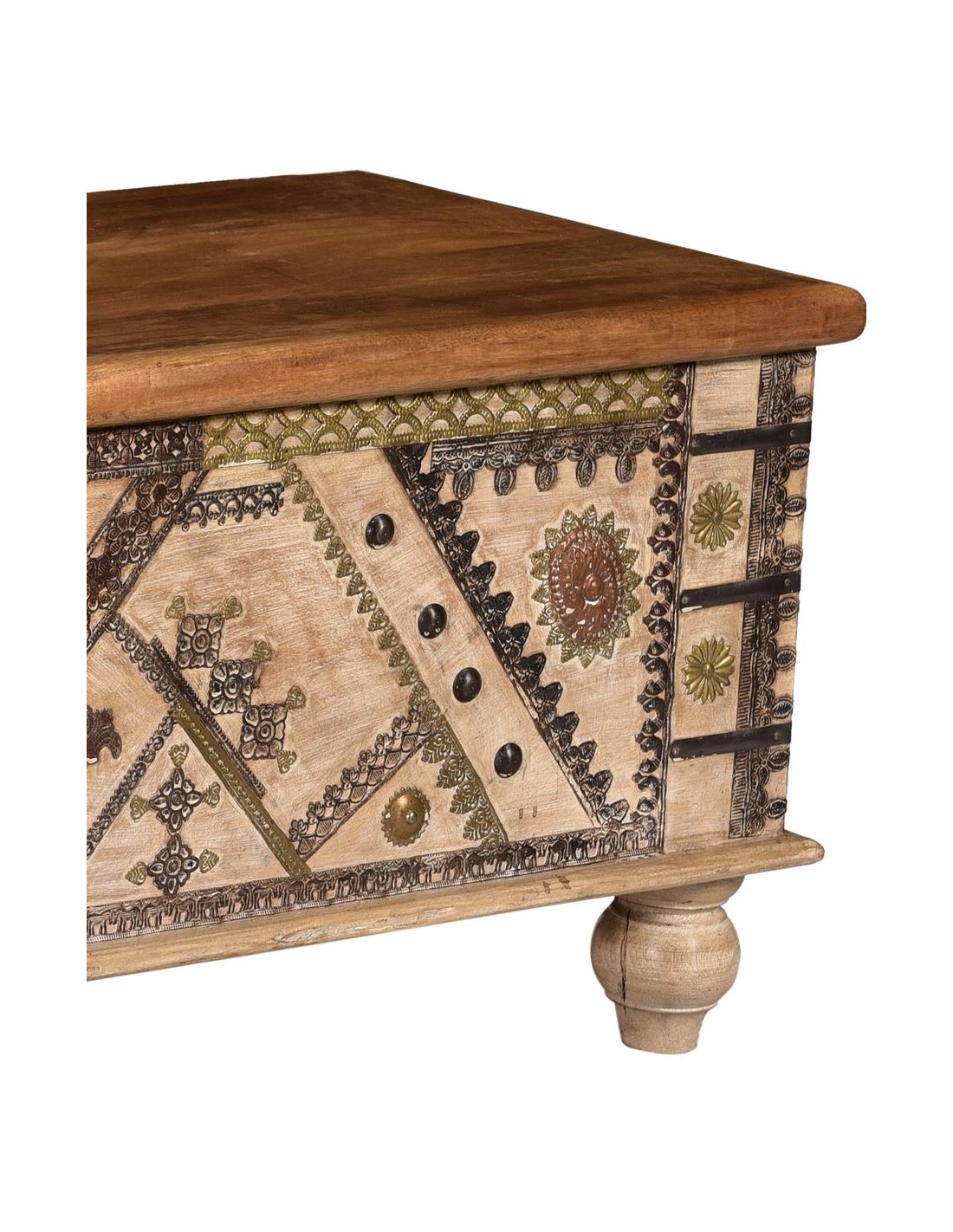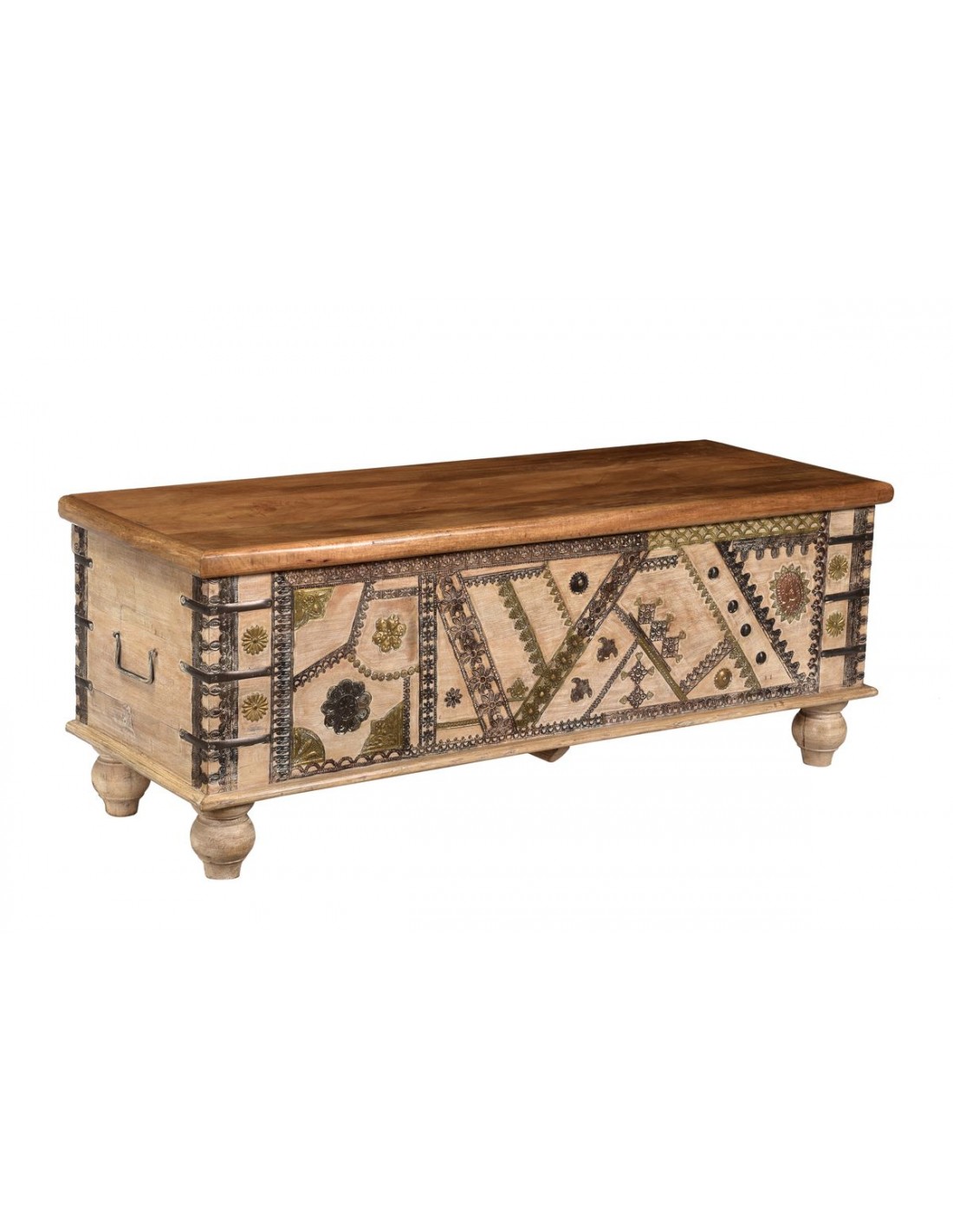 Teak wood chest decorated with metal, w.117 | import India