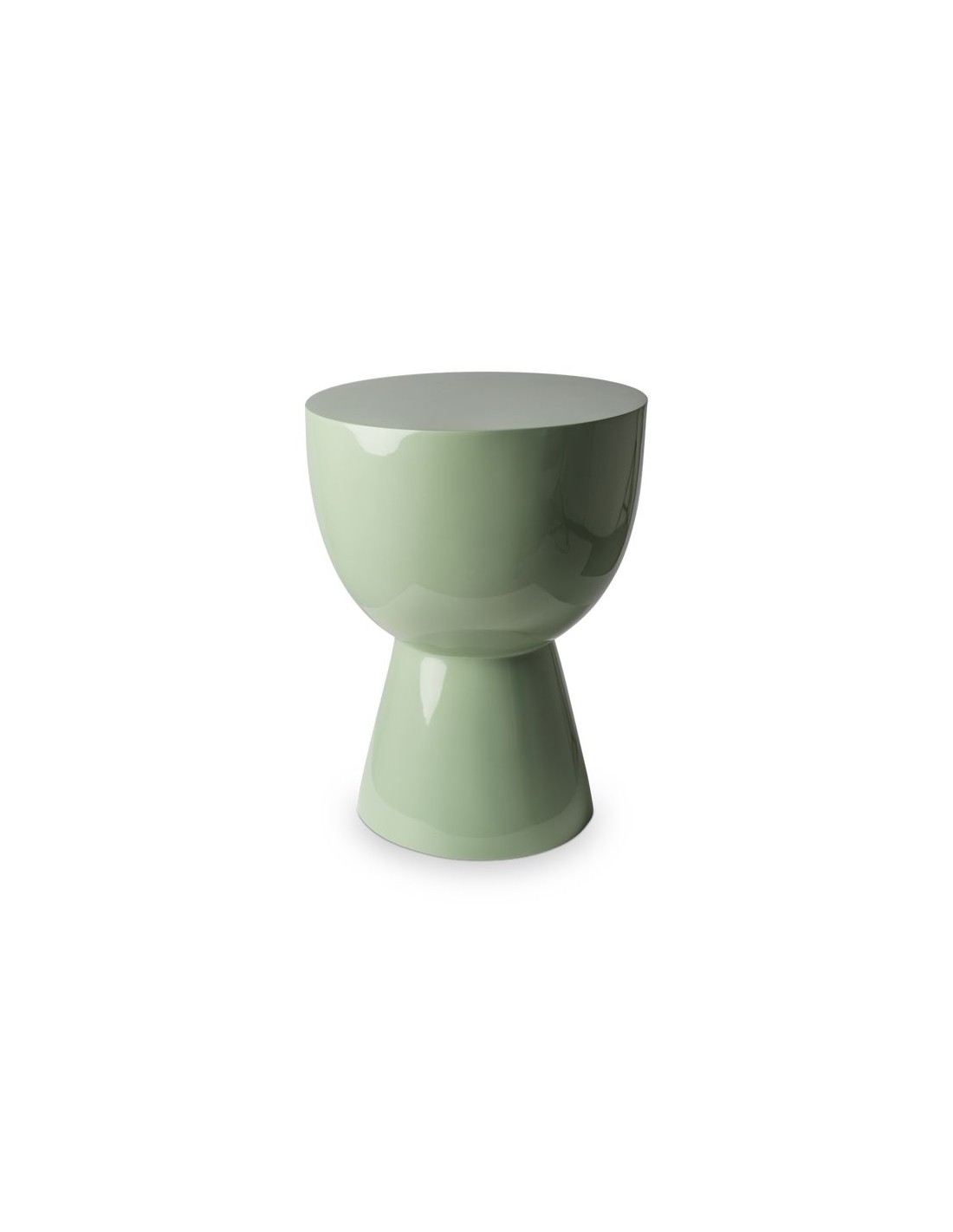 The designer lacquered table in light greenish glossy colour will enliven any interior, it will practically complement your bathroom space in a completely unconventional way, it will serve as a storage area for your favourite armchair and a cup of wine or coffee.