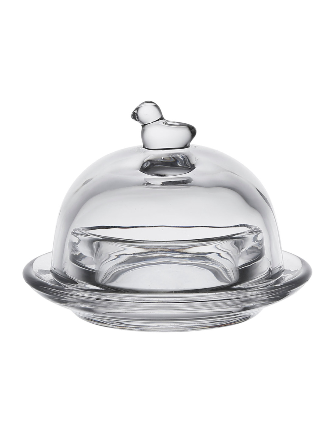 Elegant glass jar ideal for serving small or handmade butter. The transparent lid protects the contents while revealing what's inside. A nice detail is the delicately shaped glass bird that serves as a decorative handle. The box fits perfectly into any type of kitchen, from modern to rustic, romantic or country-style interiors. Thanks to its charm, it is also suitable for a festive table, where it will add a distinctive charm to the serving.