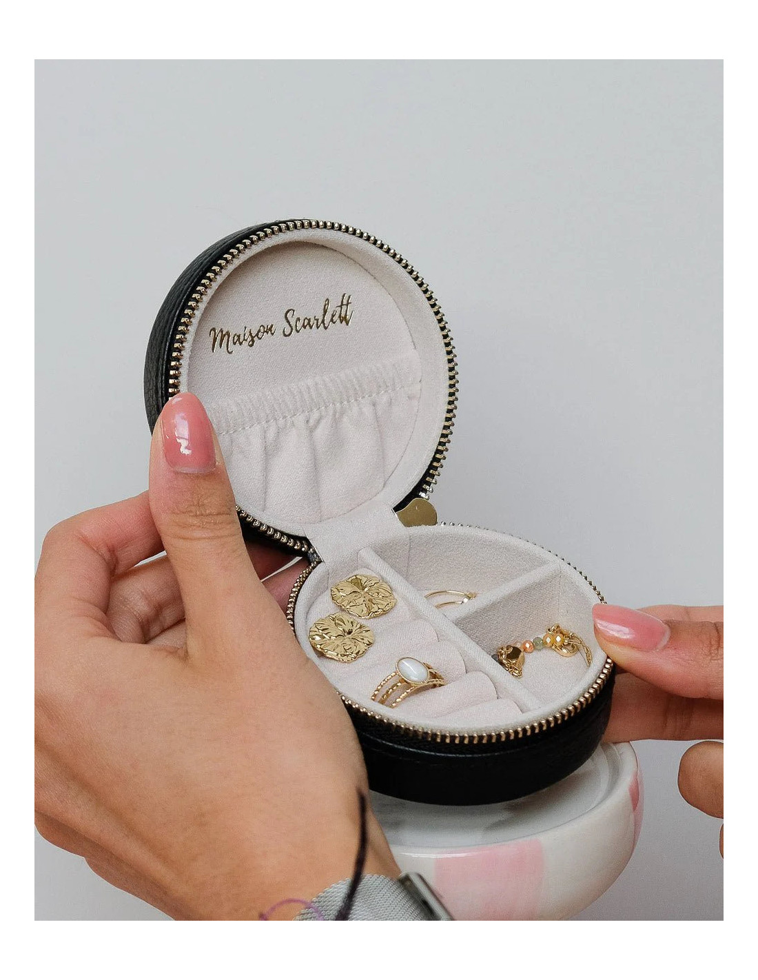 Round travel jewellery box made of artificial leather - red | MAISON SCARLET - 2
