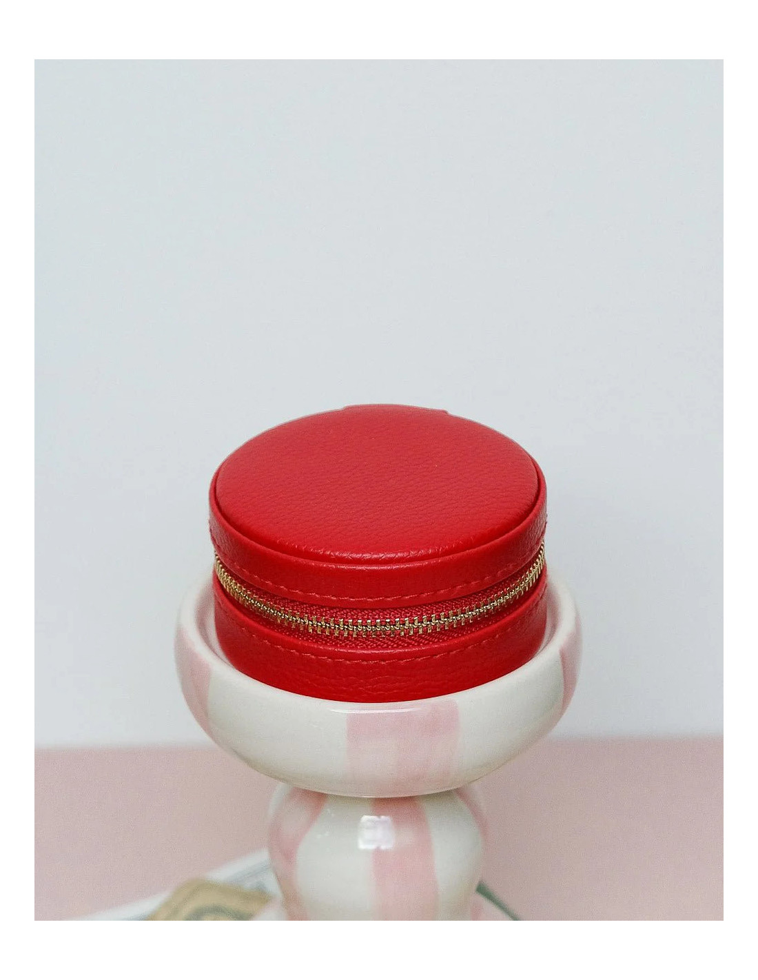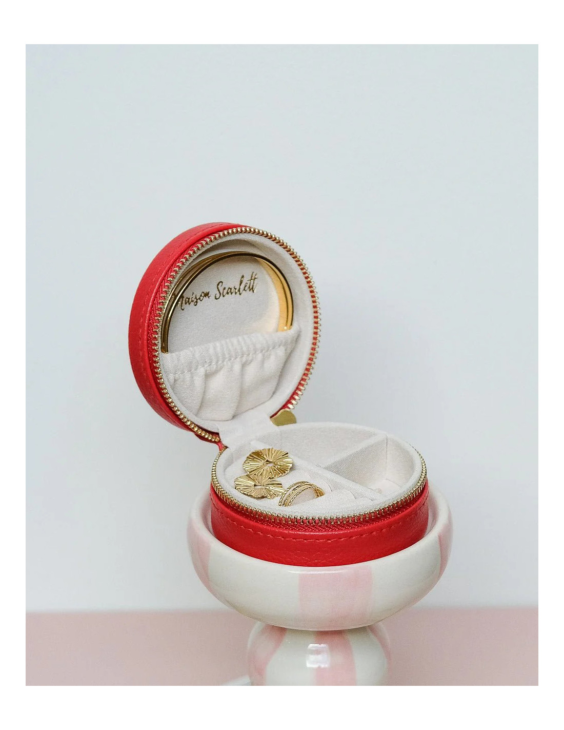 Round travel jewellery box made of artificial leather - red | MAISON SCARLET - 1