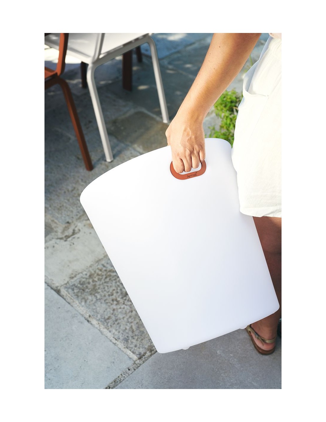 The Inoui garden light creates a pleasant atmosphere in the garden and on the terrace, and can also be used as a storage table. Thanks to wireless use and the ability to control the LED light via Bluetooth, you are completely free to decide where to place the table.