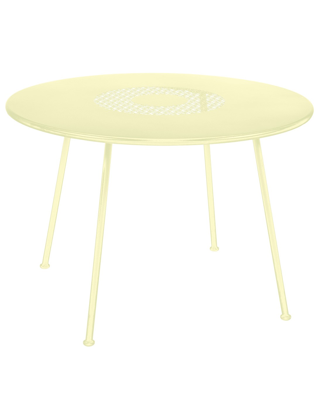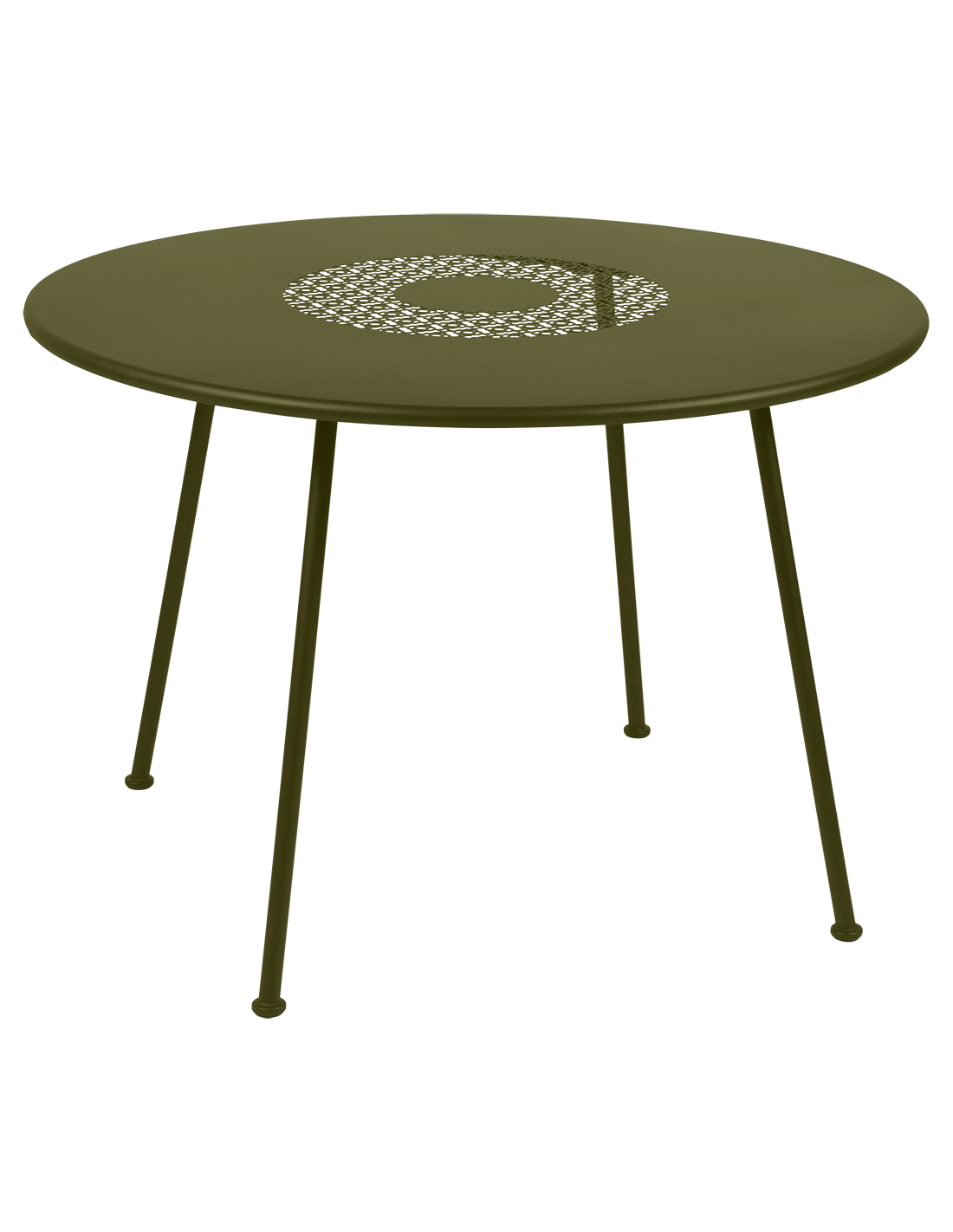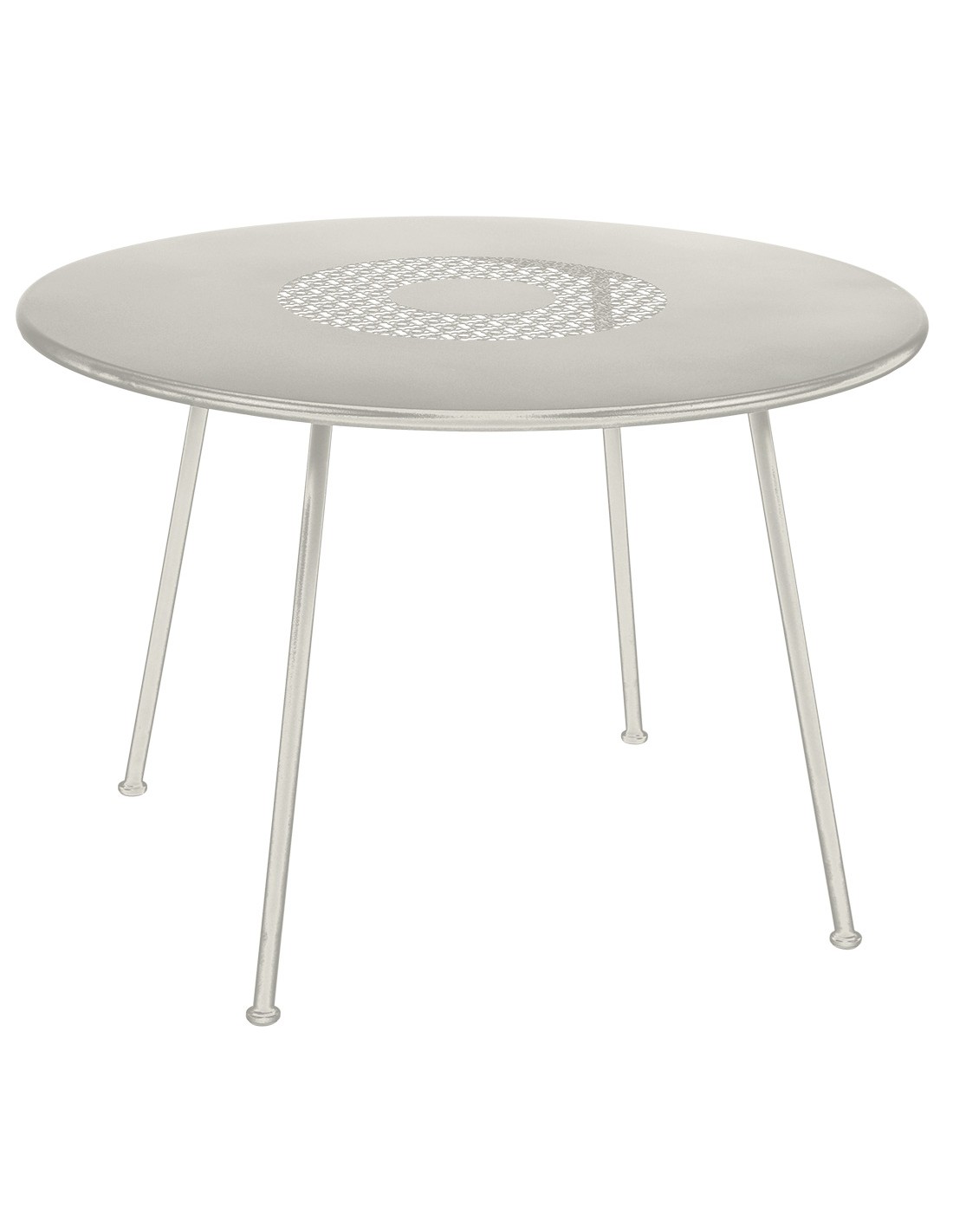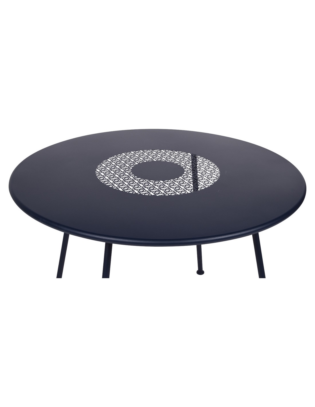 Round, metal dining table with subtle perforations, combining elements of classic and modern design. The table is matched with chairs from the same collection, and thanks to the many colour options you can create the ideal set for your terrace, garden. The table is available in many colours.
