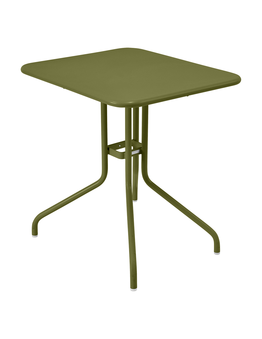 Material: tubular steel structure and top with exterior coating and UV protection, steel handle for folding and unfolding the table, reinforced table top, plastic pads.