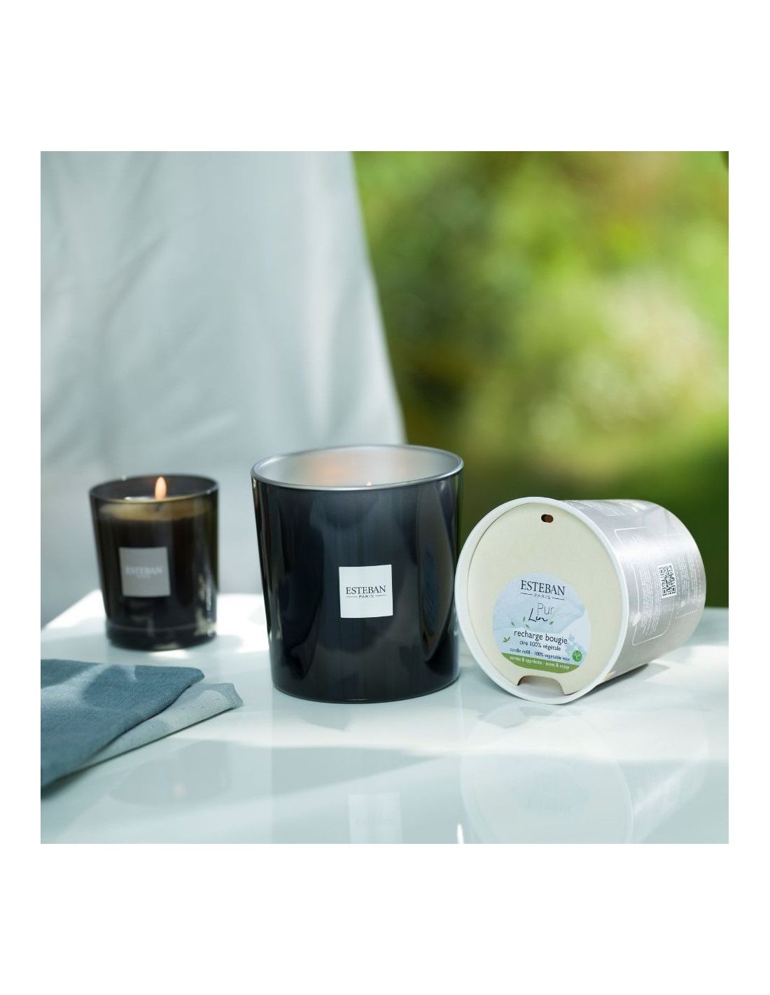 A pleasant breeze plays with the linen curtain, fluffy clouds float across the sky and you can let yourself be carried away by the fresh fragrance of Pur Lin from the French brand Esteban. Scented candle with recyclable packaging. Use candle refills to extend the life of the beautiful packaging.