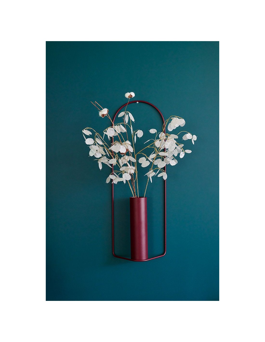 Masterful metal Itac vase with distinctive design and unique visual lightness. More than a simple vase, it is a decorative object that brings nature into the home with elegance. It is lightweight, easy to place on the floor, on furniture or even hang on the wall, try it out to find the right place for it. Thin metal construction with a cylindrical steel tube that houses a black, waterproof and removable tank that fits both fresh and dried flowers. The vase is suitable for indoor and outdoor use.